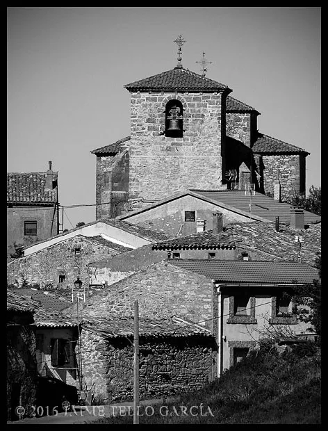 Campos que reventaban en un verdor primaveral que anuncia una cosecha aún algo lejana, interrumpidos por la presencia de pueblos pequeños y preciosos como es Yelo. Paseando por sus calles descubrí un caserío de gran calidad, bien conservado con el mimo que dan el temprano abandono y la posterior vuelta al pueblo de viejos vecinos que marcharon en busca de un futuro y nuevos vecinos que llegan en busca de la paz del mundo rural. Casas enteramente levantadas en una piedra que se tuesta al sol del atardecer. Casas de grandes dimensiones y escasos y pequeños vanos las más antiguas, que buscaban el cobijo del hogar para mantener el calor en un medio de frío cruel. Las casas más renovadas abrían desde sus fachadas amplias ventanas y balcones que, vencido el requerimiento que sus moradores tienen de calentarse gracias a las nuevas tecnologías, buscan la luz un tanto escasa en los inviernos de la estepa castellana. Continúo mi camino y al oeste y el sur del pueblo me topo con sus rincones más más singulares: sus magníficos palomares, la jugosa alameda con la que el río Bordecorex decora sus orillas, la no tan vieja escuela hoy abandonada y una sensacional vista del perfil del pueblo roto por el campanario de su iglesia de origen románico. Vuelvo a las calles y zigzagueo abrazado por las suaves colinas que rodean el pueblo y disfrutando del rumor suave del viento que mece las ramas de los árboles y los brotes inminentes de cereal. Un silencio que ni tan siquiera puede romper el ladrido de algún perro, tal es la soledad y la despoblación de esta bellísima comarca.