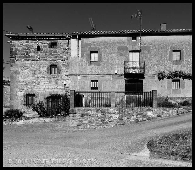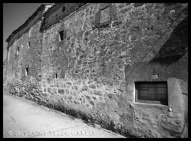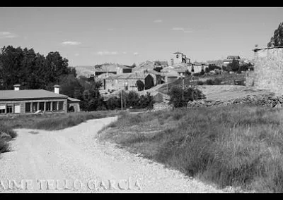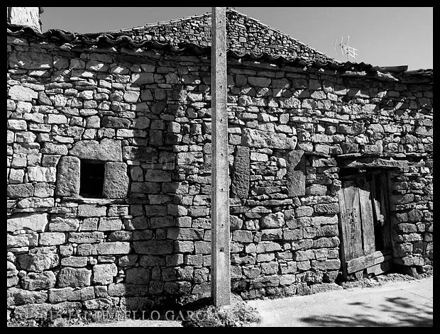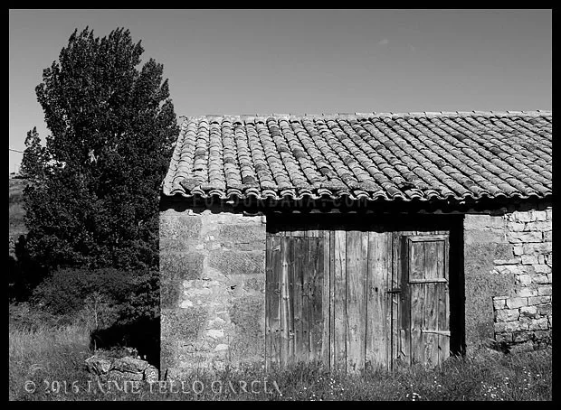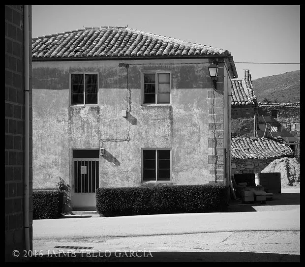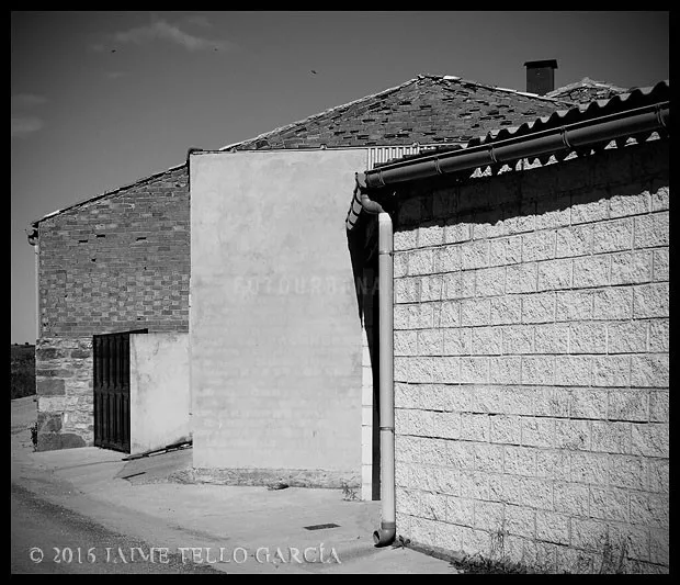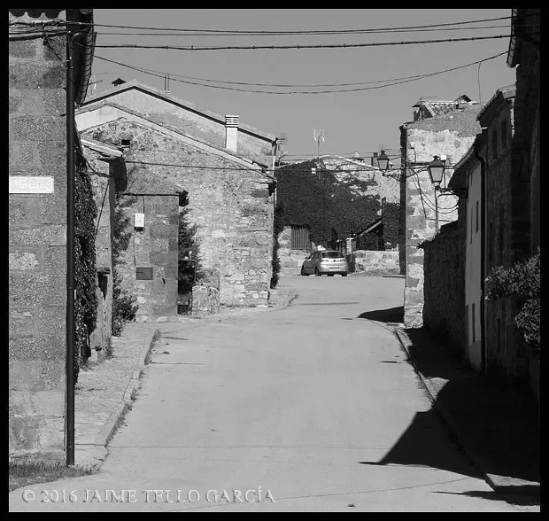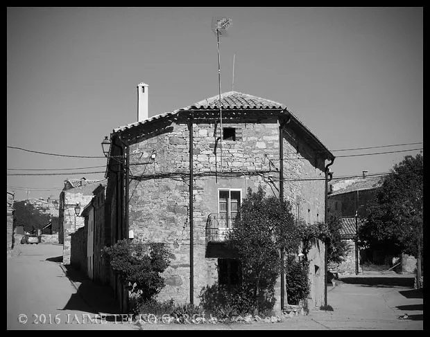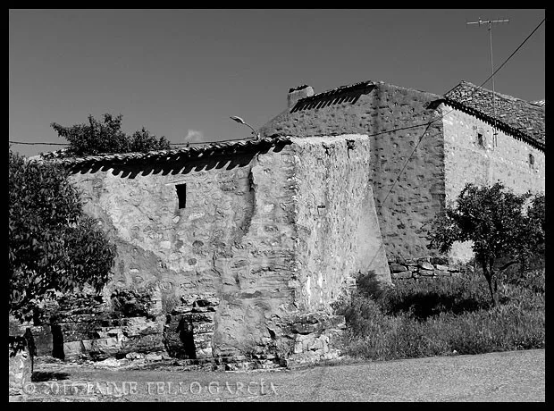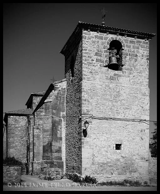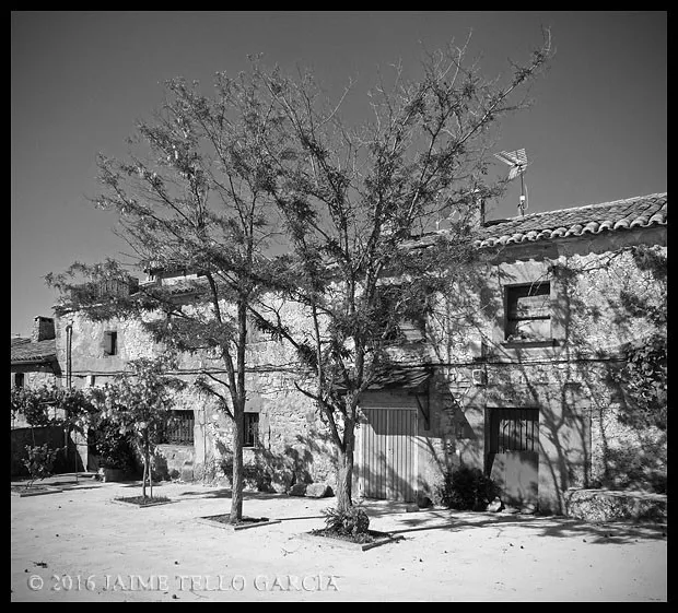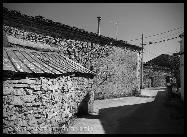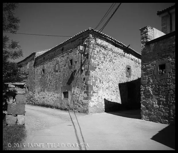 Campos que reventaban en un verdor primaveral que anuncia una cosecha aún algo lejana, interrumpidos por la presencia de pueblos pequeños y preciosos como es Yelo. Paseando por sus calles descubrí un caserío de gran calidad, bien conservado con el mimo que dan el temprano abandono y la posterior vuelta al pueblo de viejos vecinos que marcharon en busca de un futuro y nuevos vecinos que llegan en busca de la paz del mundo rural. Casas enteramente levantadas en una piedra que se tuesta al sol del atardecer. Casas de grandes dimensiones y escasos y pequeños vanos las más antiguas, que buscaban el cobijo del hogar para mantener el calor en un medio de frío cruel. Las casas más renovadas abrían desde sus fachadas amplias ventanas y balcones que, vencido el requerimiento que sus moradores tienen de calentarse gracias a las nuevas tecnologías, buscan la luz un tanto escasa en los inviernos de la estepa castellana. Continúo mi camino y al oeste y el sur del pueblo me topo con sus rincones más más singulares: sus magníficos palomares, la jugosa alameda con la que el río Bordecorex decora sus orillas, la no tan vieja escuela hoy abandonada y una sensacional vista del perfil del pueblo roto por el campanario de su iglesia de origen románico. Vuelvo a las calles y zigzagueo abrazado por las suaves colinas que rodean el pueblo y disfrutando del rumor suave del viento que mece las ramas de los árboles y los brotes inminentes de cereal. Un silencio que ni tan siquiera puede romper el ladrido de algún perro, tal es la soledad y la despoblación de esta bellísima comarca.