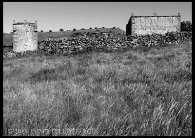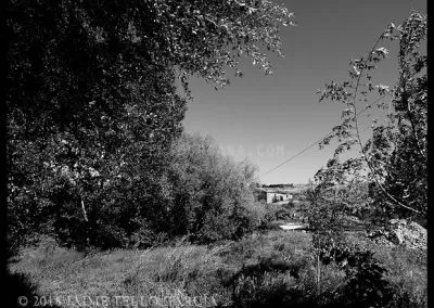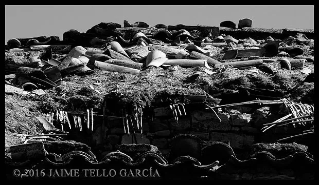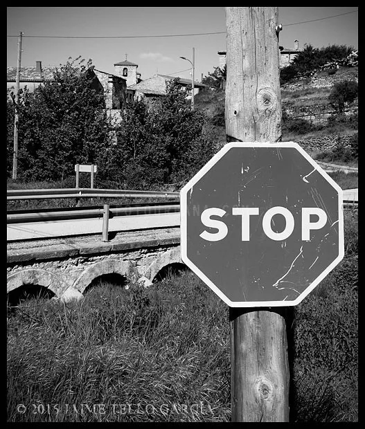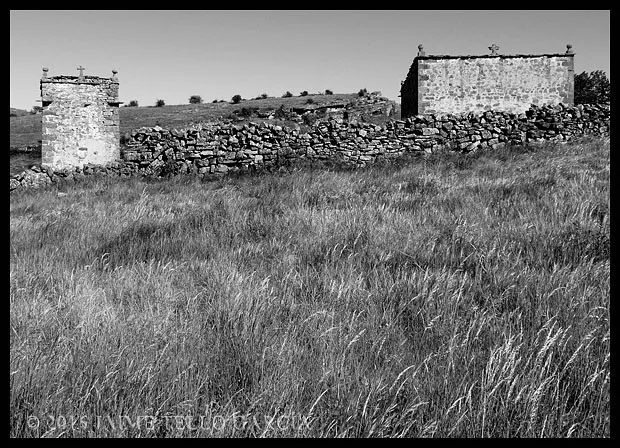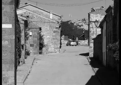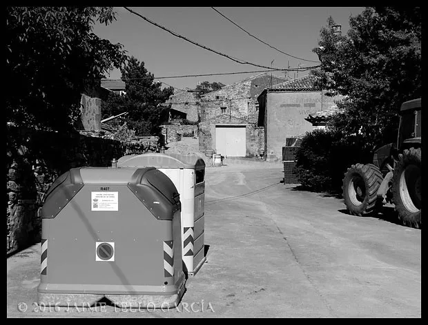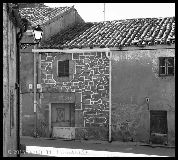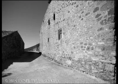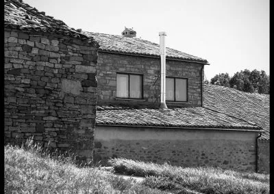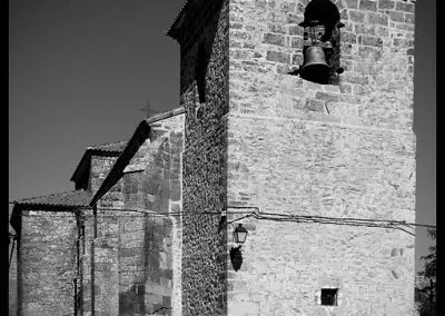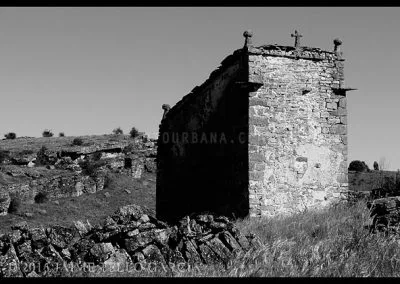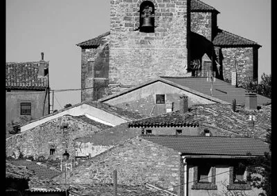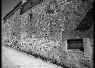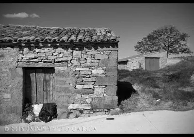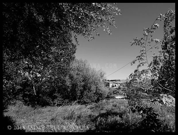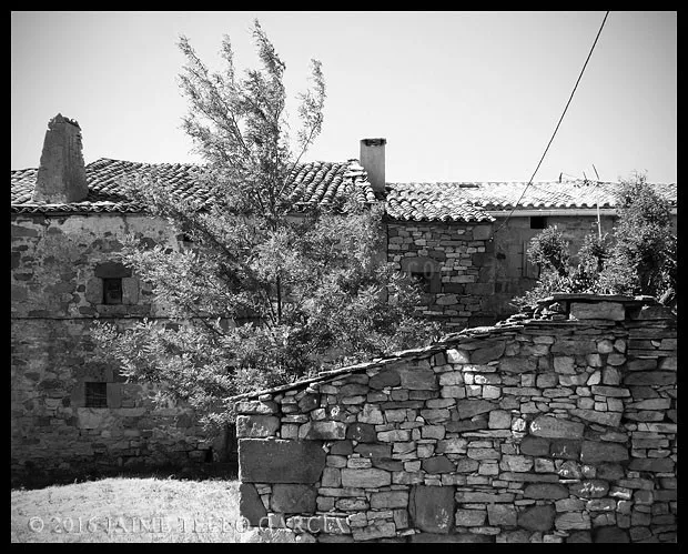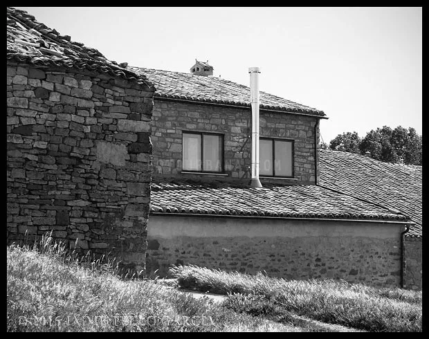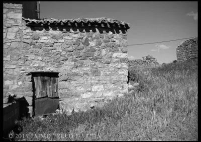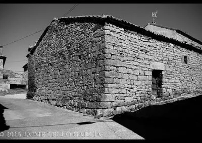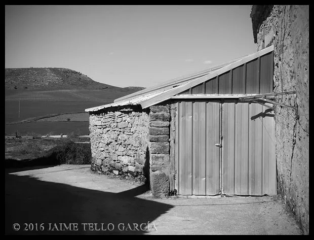 Campos que reventaban en un verdor primaveral que anuncia una cosecha aún algo lejana, interrumpidos por la presencia de pueblos pequeños y preciosos como es Yelo. Paseando por sus calles descubrí un caserío de gran calidad, bien conservado con el mimo que dan el temprano abandono y la posterior vuelta al pueblo de viejos vecinos que marcharon en busca de un futuro y nuevos vecinos que llegan en busca de la paz del mundo rural. Casas enteramente levantadas en una piedra que se tuesta al sol del atardecer. Casas de grandes dimensiones y escasos y pequeños vanos las más antiguas, que buscaban el cobijo del hogar para mantener el calor en un medio de frío cruel. Las casas más renovadas abrían desde sus fachadas amplias ventanas y balcones que, vencido el requerimiento que sus moradores tienen de calentarse gracias a las nuevas tecnologías, buscan la luz un tanto escasa en los inviernos de la estepa castellana. Continúo mi camino y al oeste y el sur del pueblo me topo con sus rincones más más singulares: sus magníficos palomares, la jugosa alameda con la que el río Bordecorex decora sus orillas, la no tan vieja escuela hoy abandonada y una sensacional vista del perfil del pueblo roto por el campanario de su iglesia de origen románico. Vuelvo a las calles y zigzagueo abrazado por las suaves colinas que rodean el pueblo y disfrutando del rumor suave del viento que mece las ramas de los árboles y los brotes inminentes de cereal. Un silencio que ni tan siquiera puede romper el ladrido de algún perro, tal es la soledad y la despoblación de esta bellísima comarca.